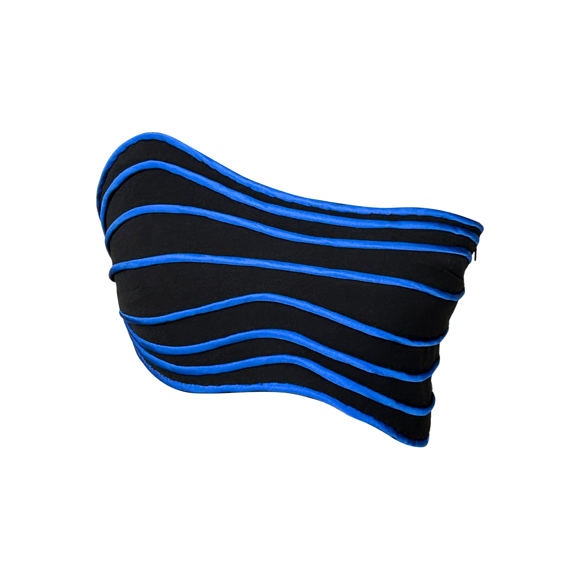 A handcrafted crop top made from premium Italian crepe, finished with satin piping that traces the body with precision. The contrast between the matte structure of crepe and the subtle sheen of satin creates a refined yet powerful silhouette.